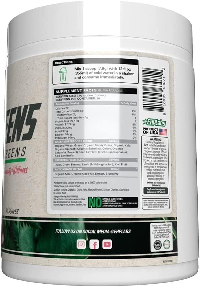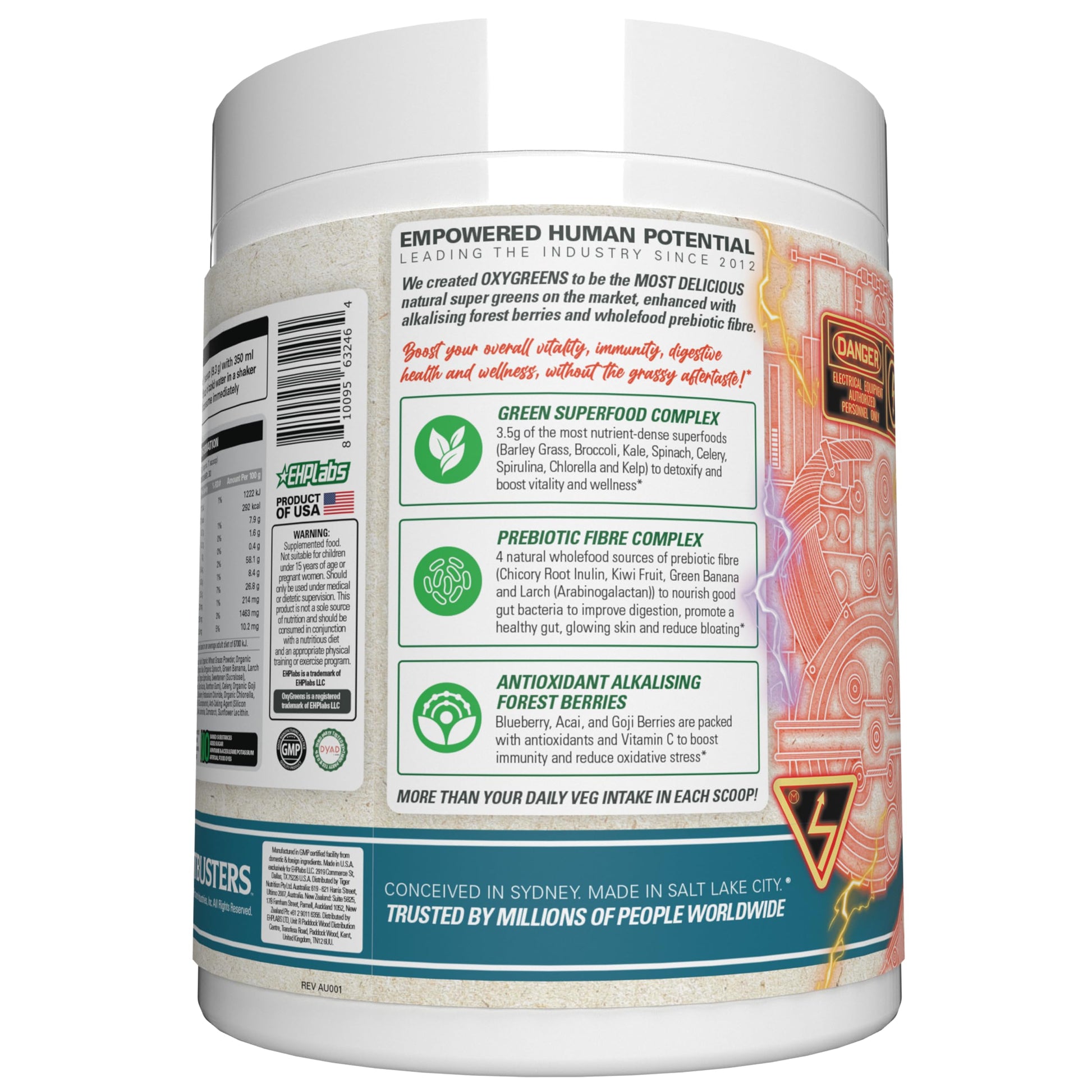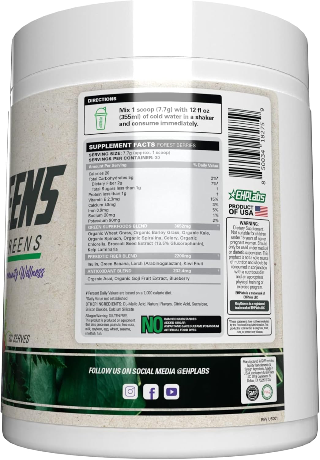 EHP Labs OxyGreens Daily Super Greens Powder - Green Superfood, Spirulina Herbal Supplement with Prebiotic Fibre, Alkalizing Antioxidants & Immunity Wellness, 30 Serves (Forest Berries)
