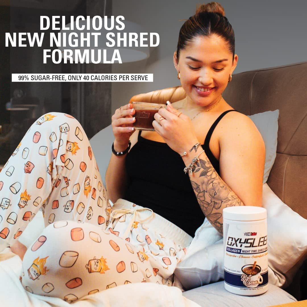 EHPlabs OxySleep Collagen Peptides Powder Night Time Shred - Promotes Deep Sleep & Shredding, Skin, Bones & Muscle Support, Pasture-Raised Bovine Collagen, Type I & III, 30 Servings (Hot Cocoa)