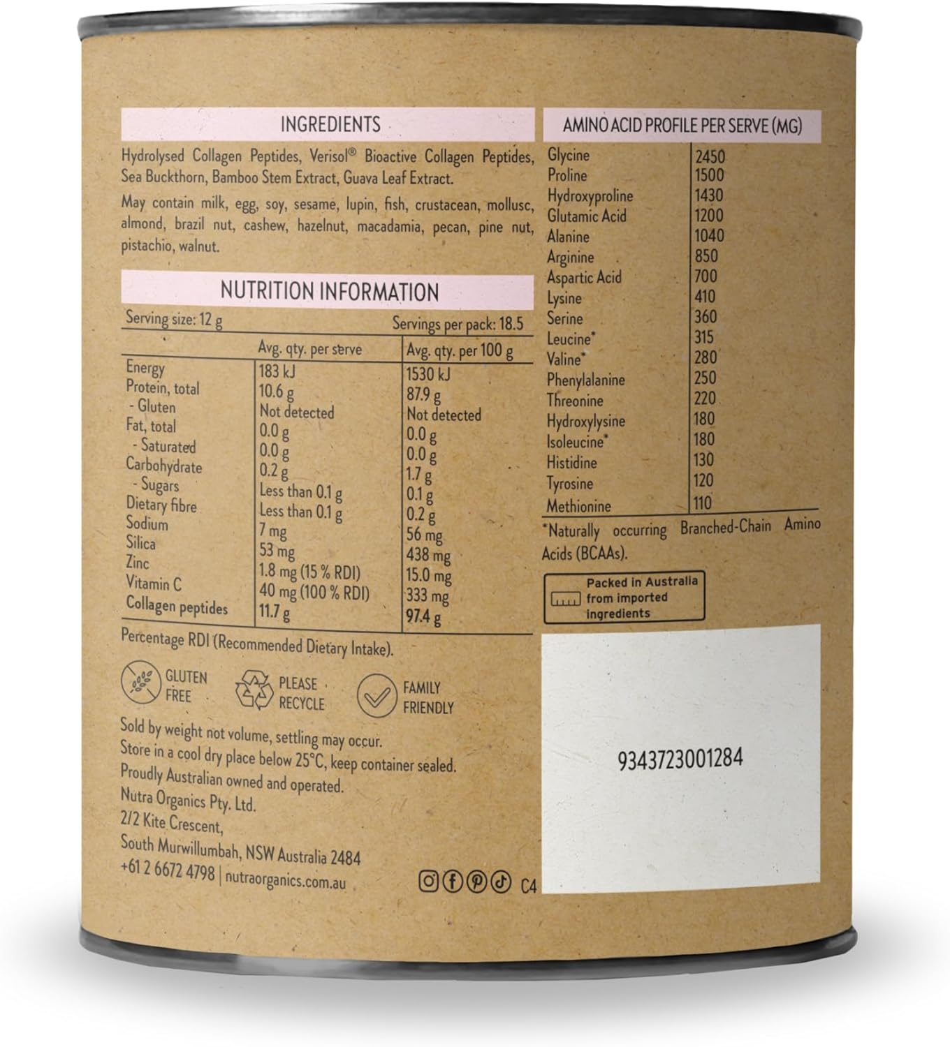 - Advanced Ingredients: Features VERISOL Bioactive Collagen Peptides, Vitamin C, Sea Buckthorn Juice, Bamboo Stem & Guava Leaf Extracts.