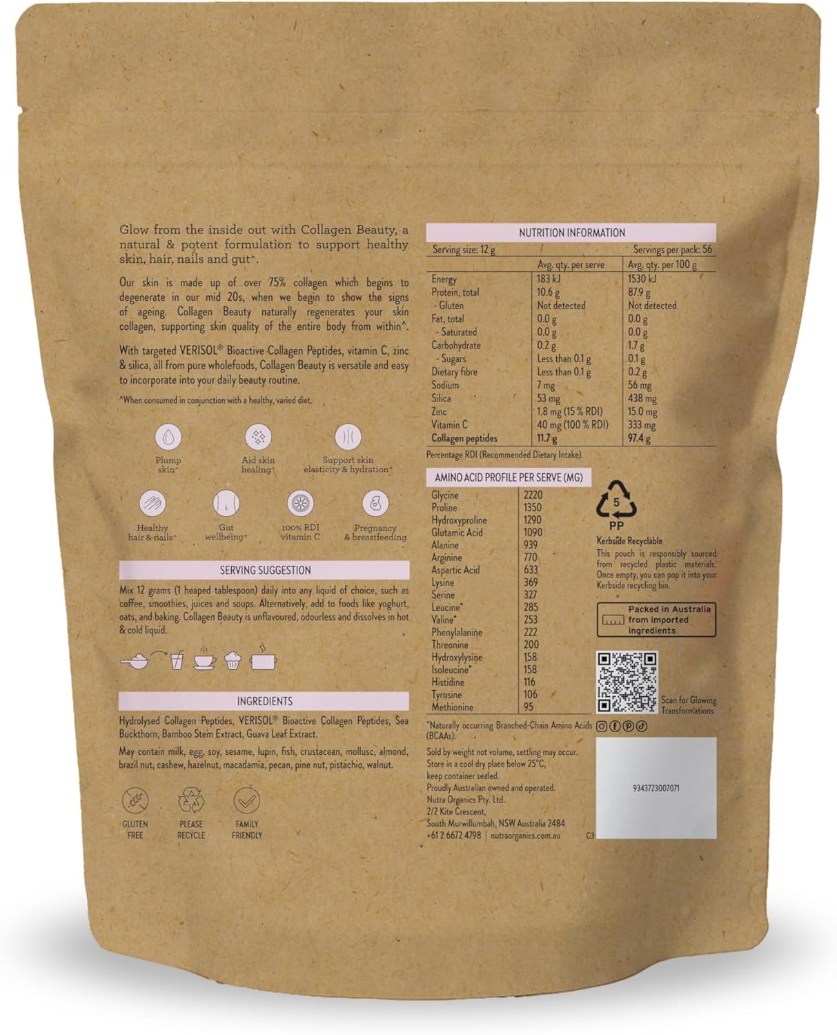 Nutra Organics Collagen Beauty Unflavoured 672g | Anti-Aging Collagen Peptides and Vitamin C | Collagen Powder for Healthy Hair, Nail and Skin (56 Serves)