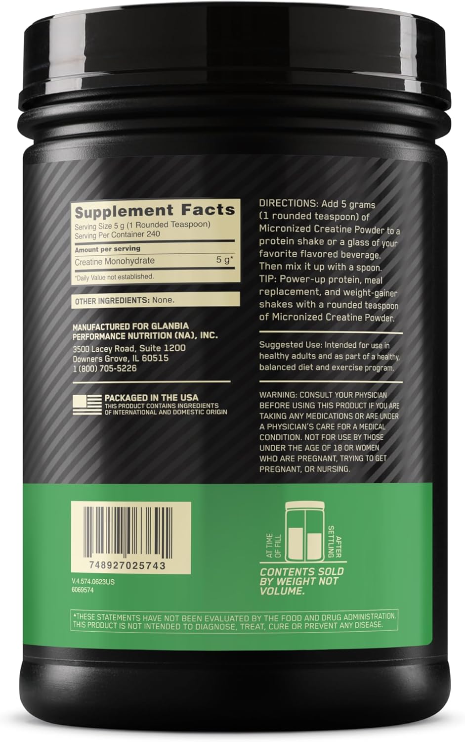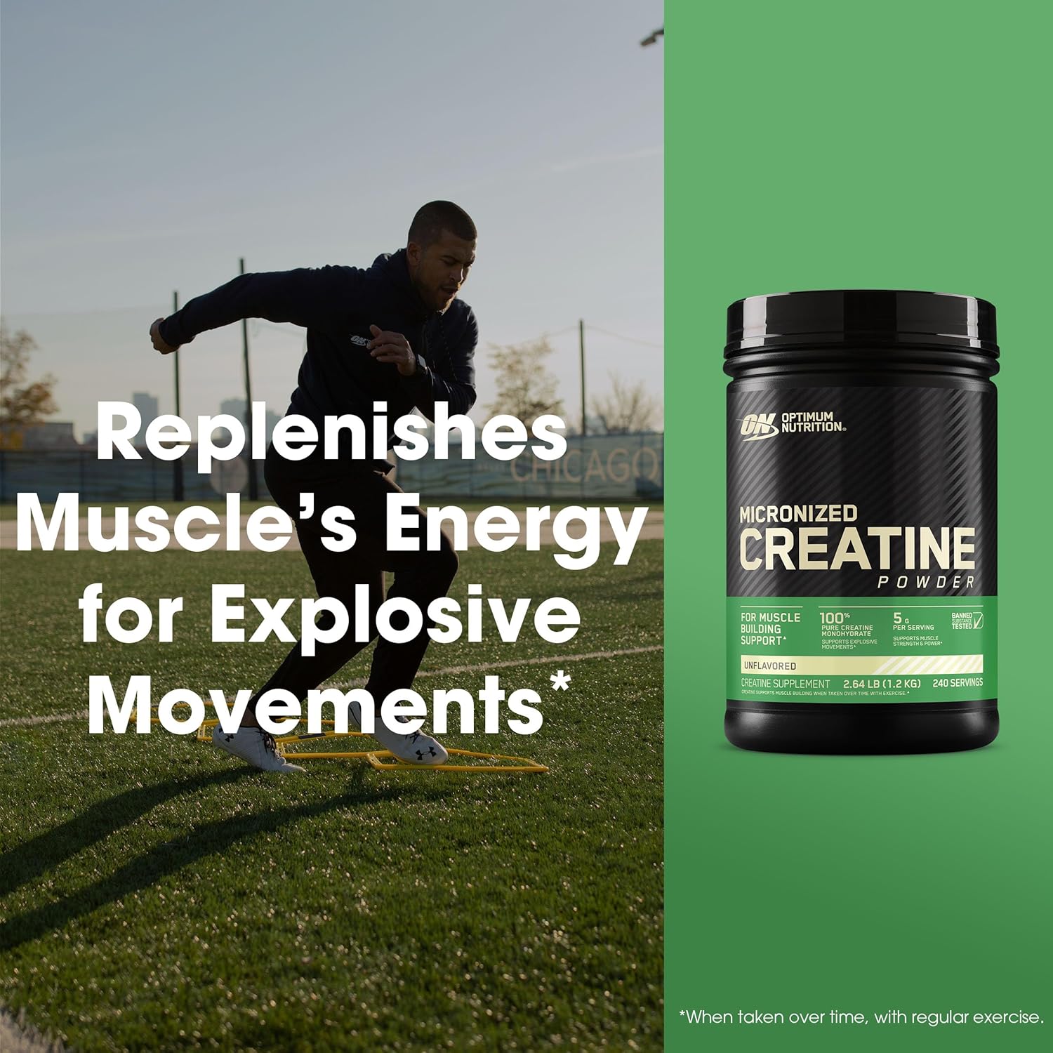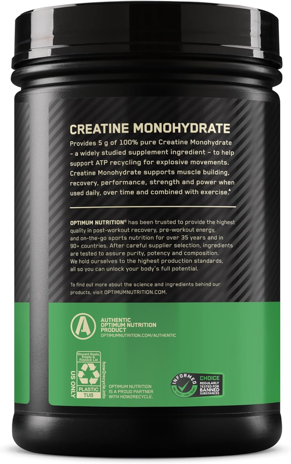 Maximize your workout potential with Optimum Nutrition Micronized Creatine Powder. Extensively researched, this supplement helps support muscle growth, strength, and recovery when consistently used alongside a healthy diet and weight training. Each serving contains 5 grams of pure Creatine Monohydrate, with zero calories and carbohydrates, and is micronized for effortless mixing. Made for healthy adults as part of a well-rounded lifestyle and fitness regimen.