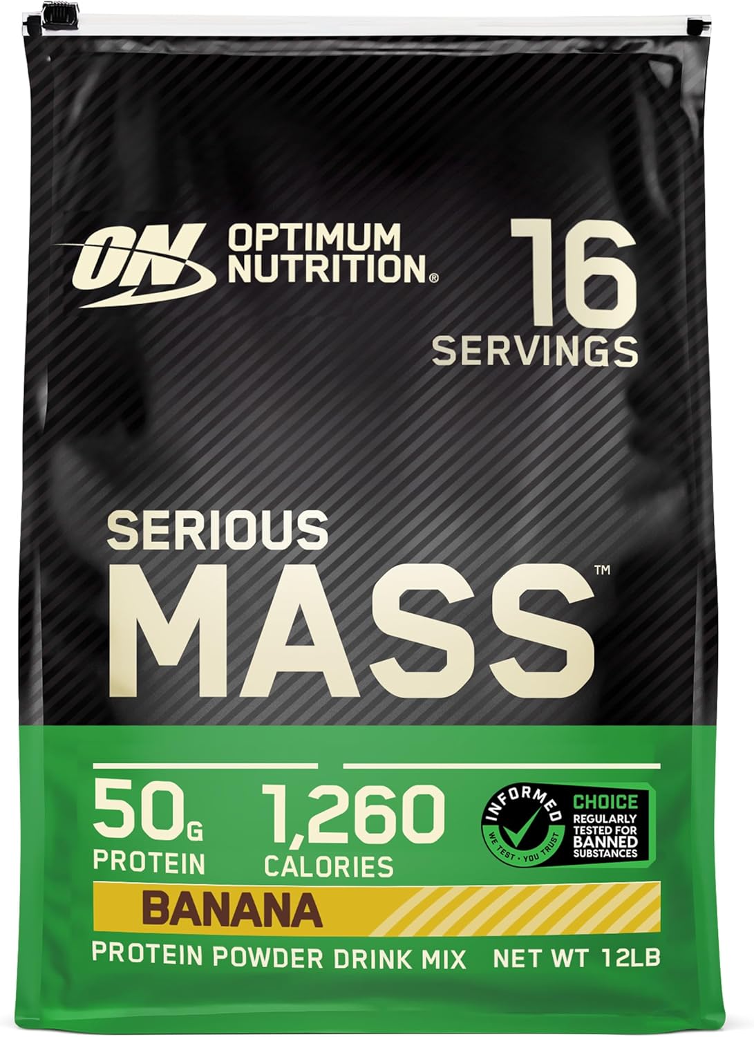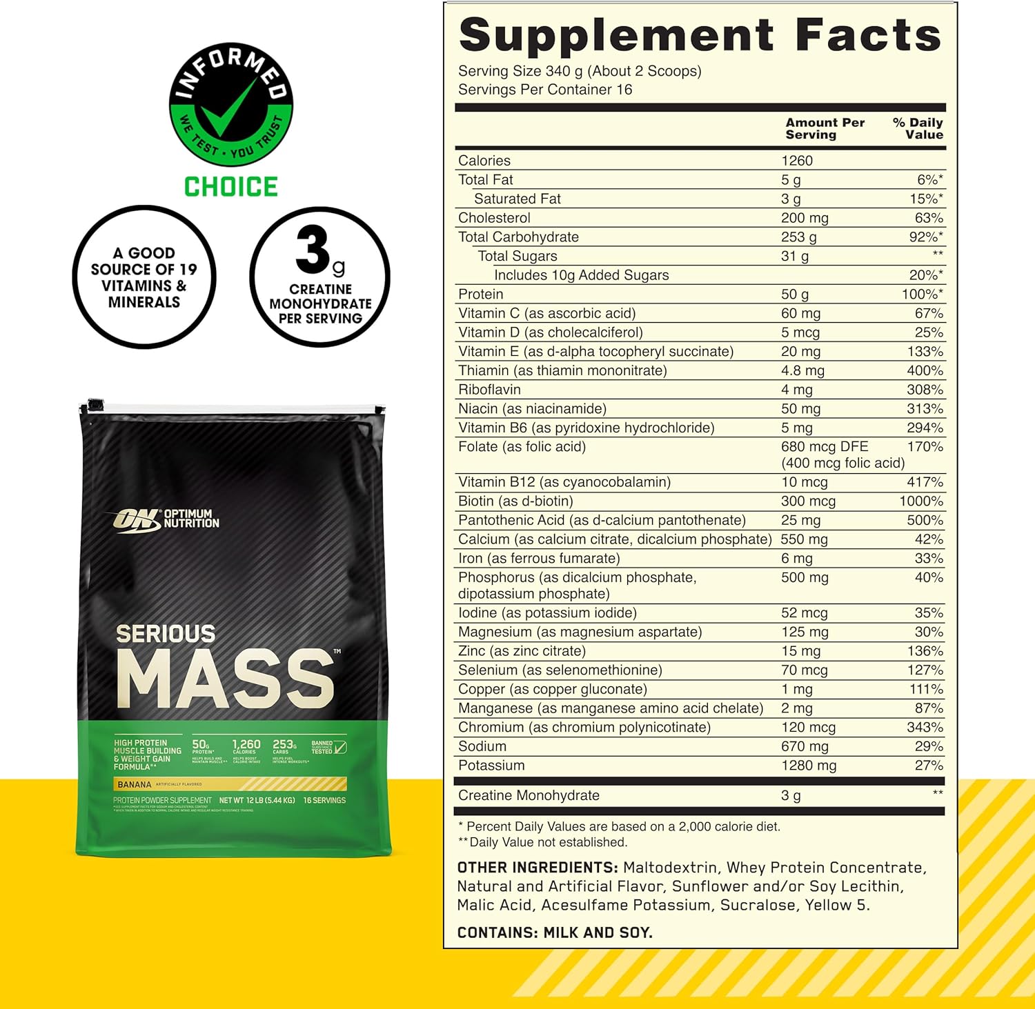 Optimum Nutrition Serious Mass Gainer Protein Powder, Banana, 12 Pound
