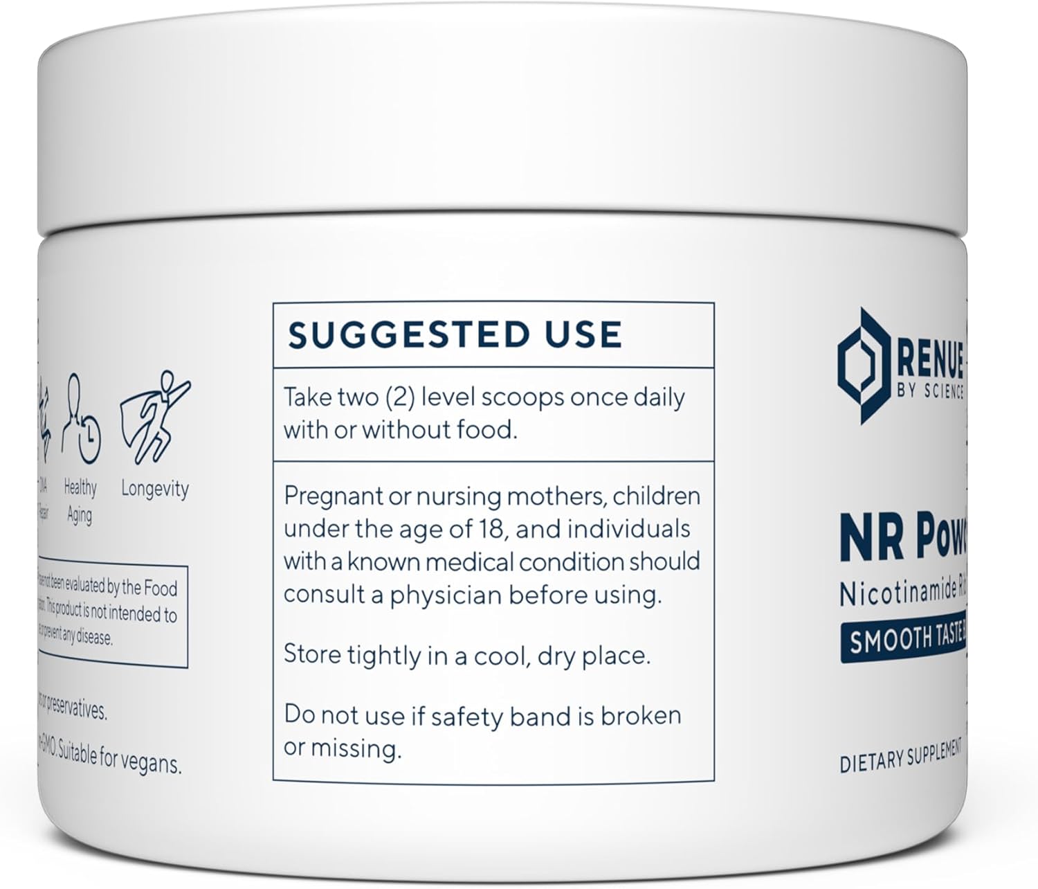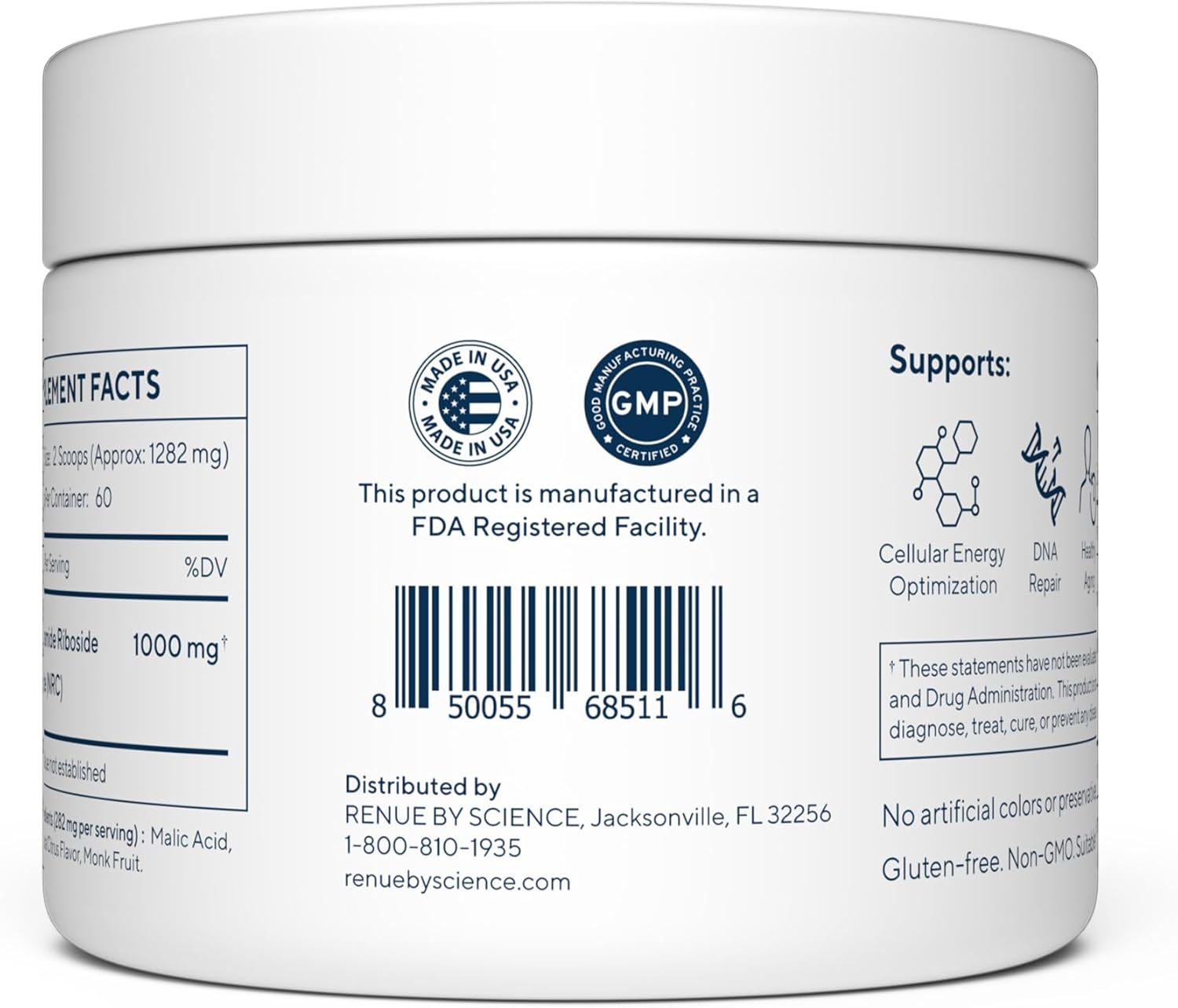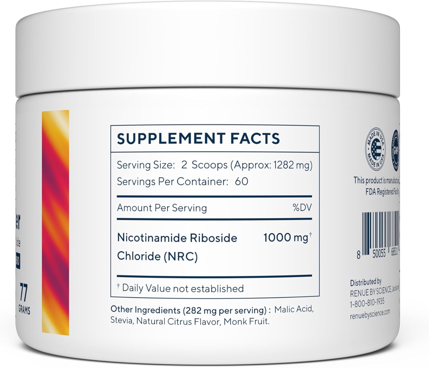 Renue By Science Nicotinamide Riboside Powder, 1000mg NAD Precursor, High Potency NR Sublingual Citrus Burst Flavor for Cellular Health, Rejuvenation, Neuroprotection, and Longevity, 60 Servings