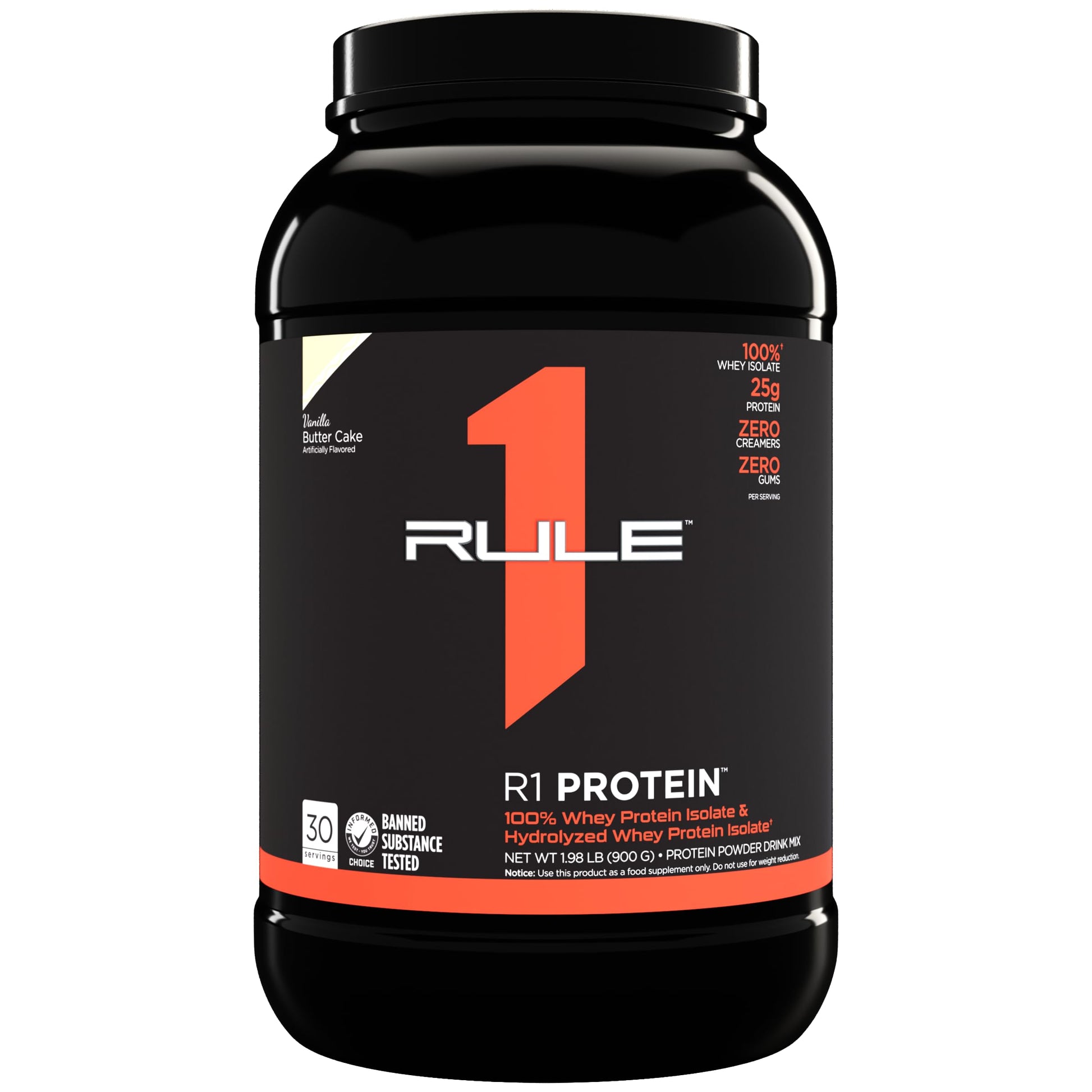 Rule1 R1 100% Whey Protein Isolate and Hydrolysate Protein Powder 1.98 lb, Vanilla Butter Cake (30 Servings)