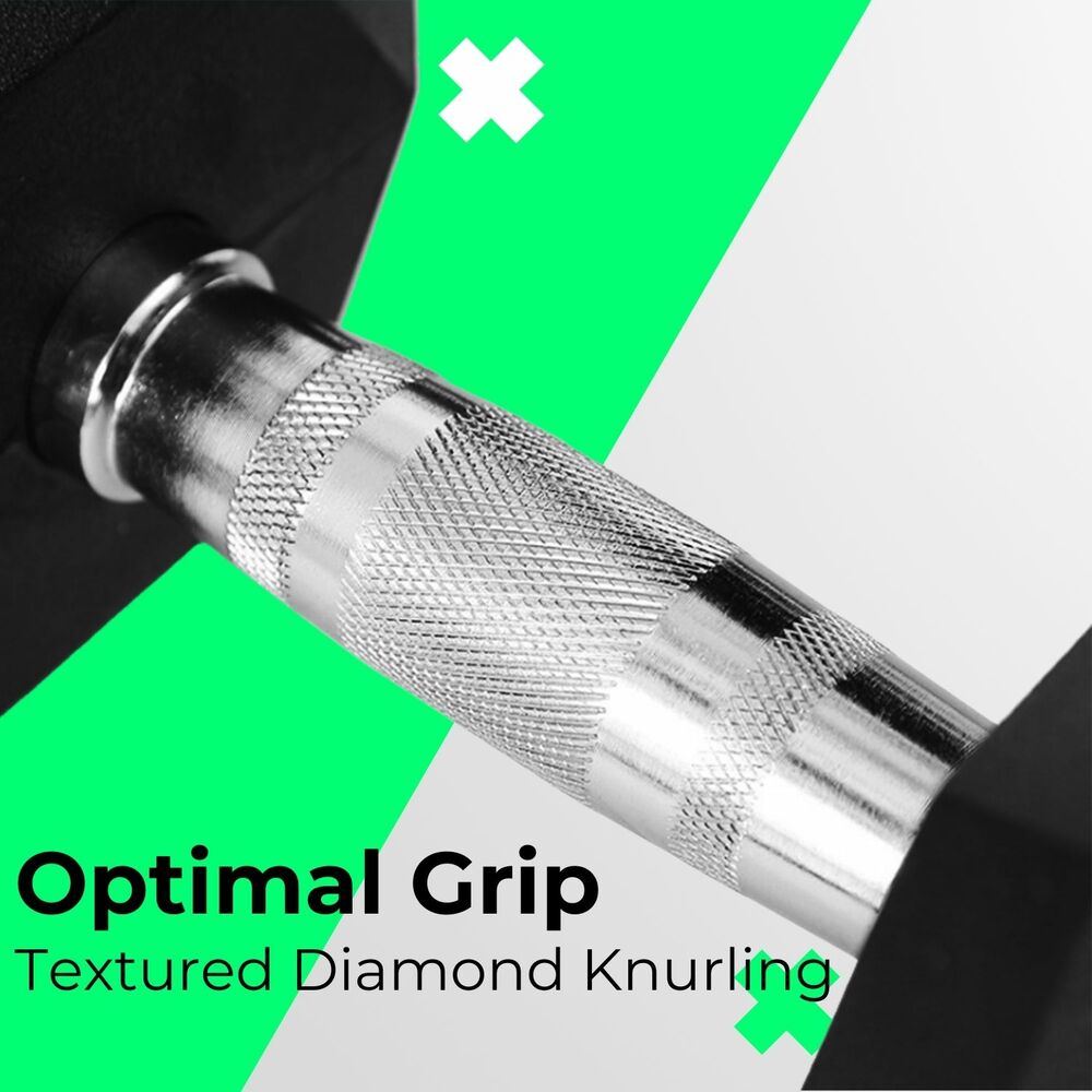 Designed for your comfort, the grip comes with a textured Diamond Knurling to help you firmly hold onto the dumbbell during a sweaty workout.